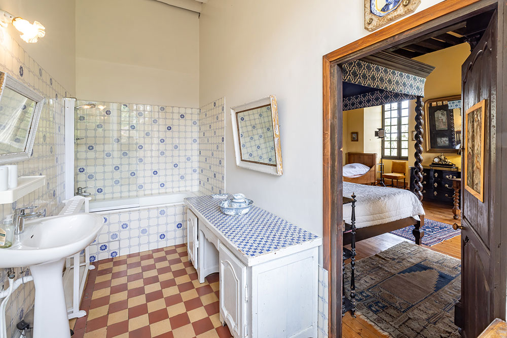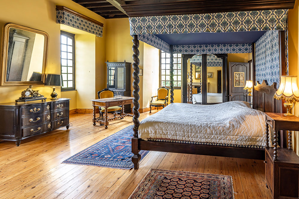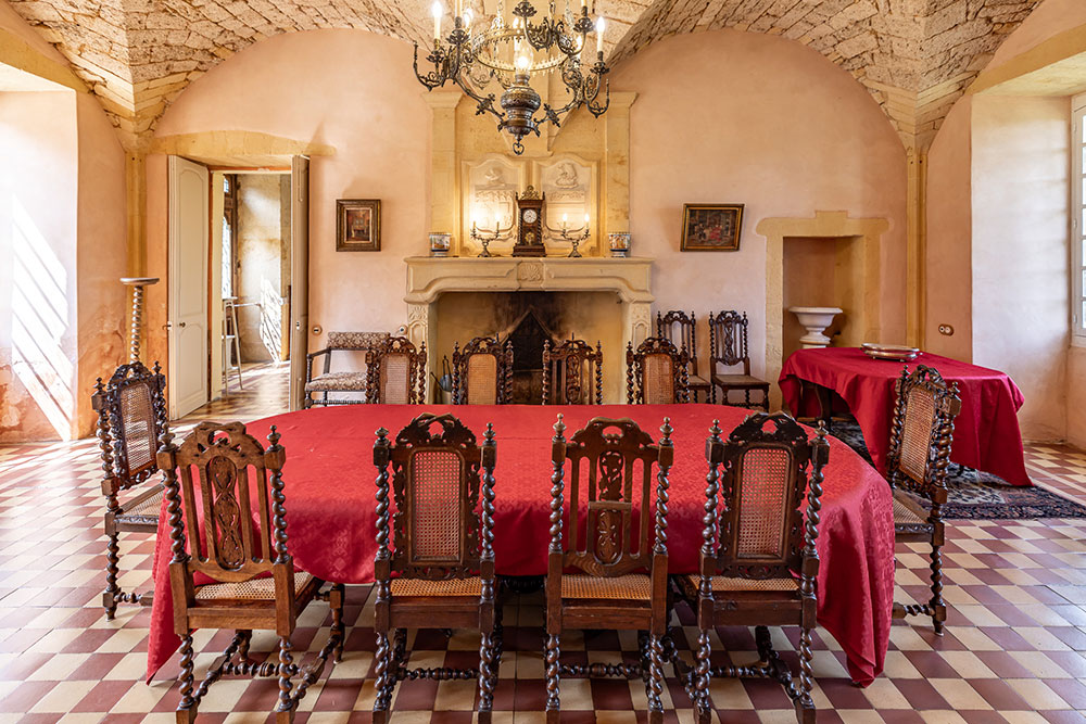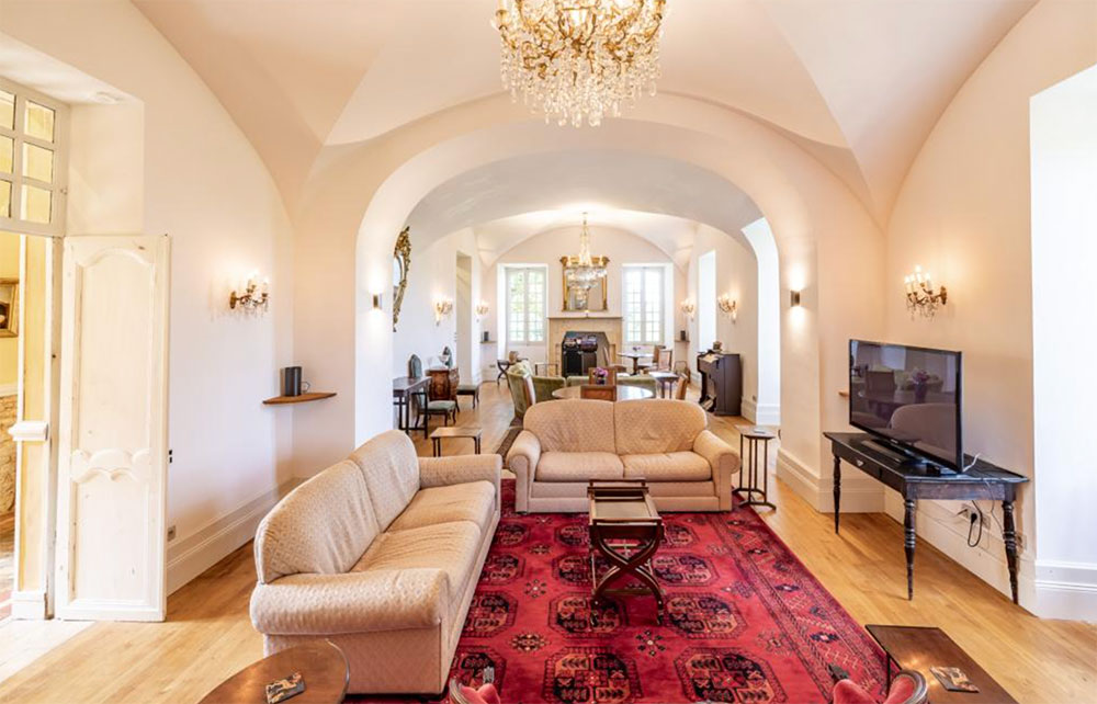 Binnenin zijn de historische details prachtig bewaard gebleven: gewelfde plafonds, pilaren, authentieke tegelvloeren en majestueuze Lodewijk XIV-schoorstenen creëren een unieke sfeer. De grote woonkamer met kristallen kroonluchters nodigt uit tot ontspanning, spel en muziek. De volledig uitgeruste keuken is perfect voor het bereiden van gezamenlijke maaltijden of het inhuren van een chef.