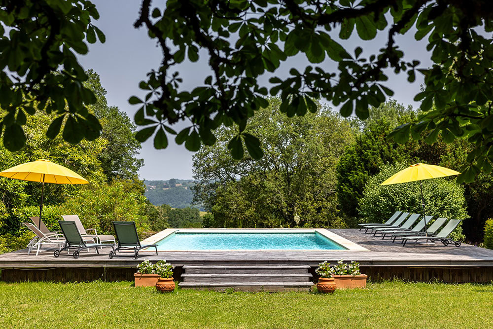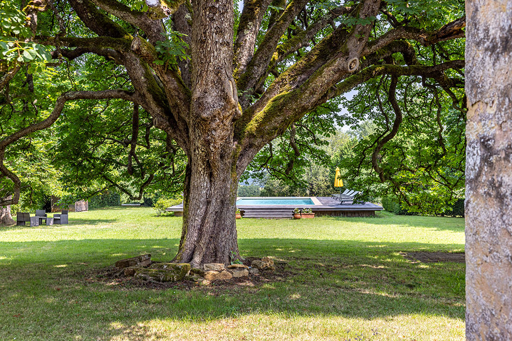 De romantische tuin is beplant met eeuwenoude bomen, waaronder een 300 jaar oude kastanje, die schaduwrijke plekken bieden op zonnige dagen. Het verwarmde zwembad met teakhouten zonneterras en het panoramische uitzicht over de vallei maken het verblijf compleet. Kinderen kunnen zich vermaken met tafeltennis, voetbal of badminton, terwijl volwassenen genieten van de rust en de ruimte.